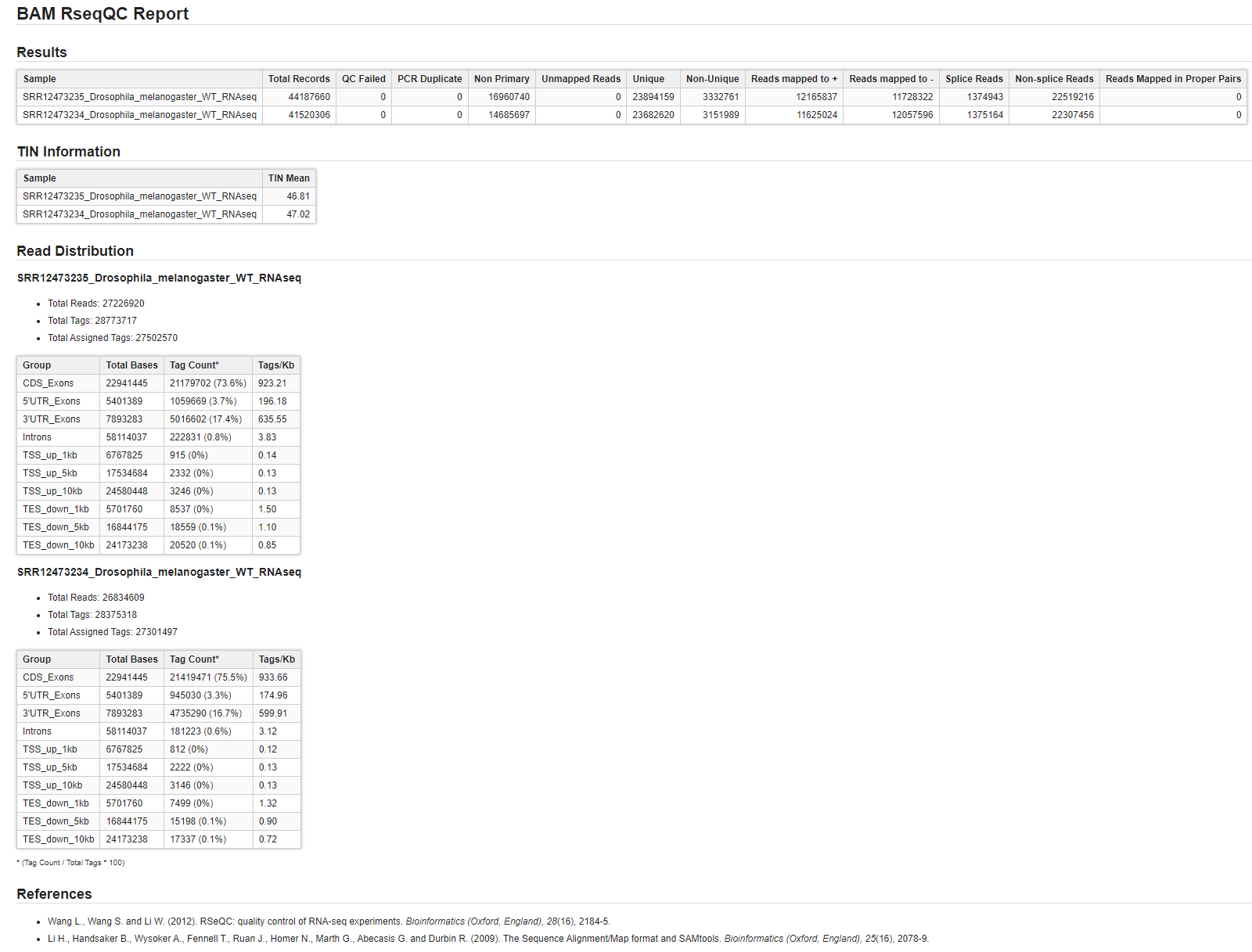 - Wang L., Wang S. and Li W. (2012). RSeQC: quality control of RNA-seq experiments. Bioinformatics (Oxford, England), 28(16), 2184-5.