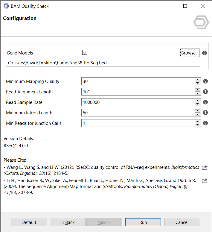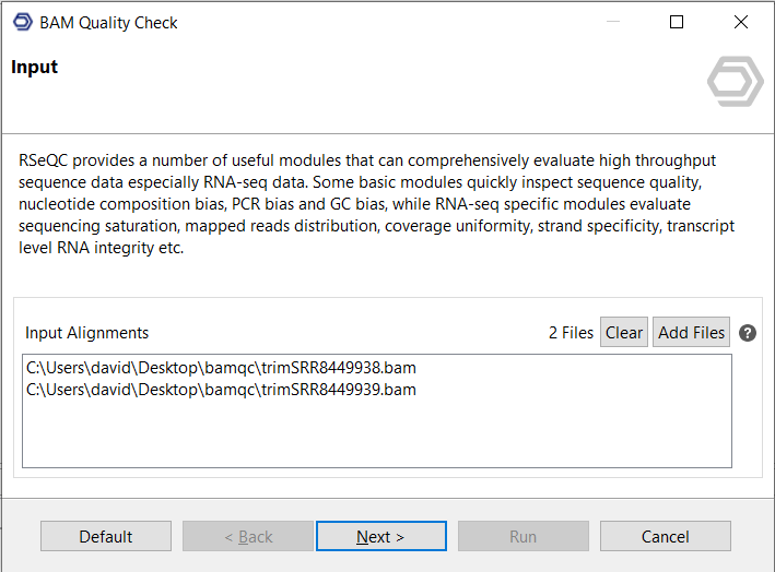 This tool allows the evaluation of alignment files of RNA-Seq datasets comprehensively. It makes use of the R package RSeQC which provides a number of modules that quickly inspect sequence quality, nucleotide composition bias, PCR bias, and GC bias. The RNA-Seq specific modules allow to evaluate: