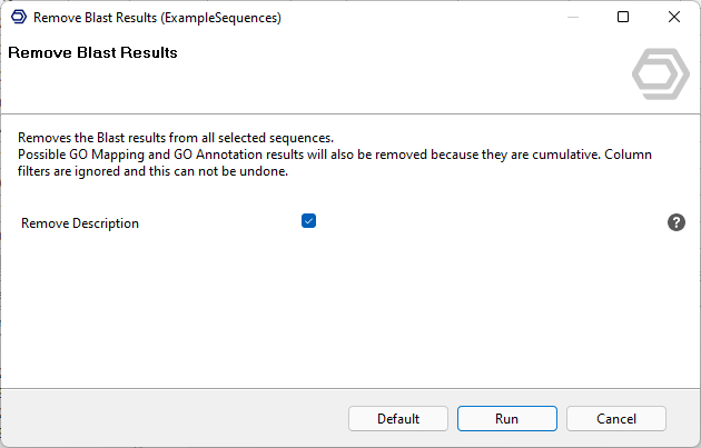 This option will remove the BLAST results from the selected sequences. It is possible to also remove the description of the sequences or leave them.