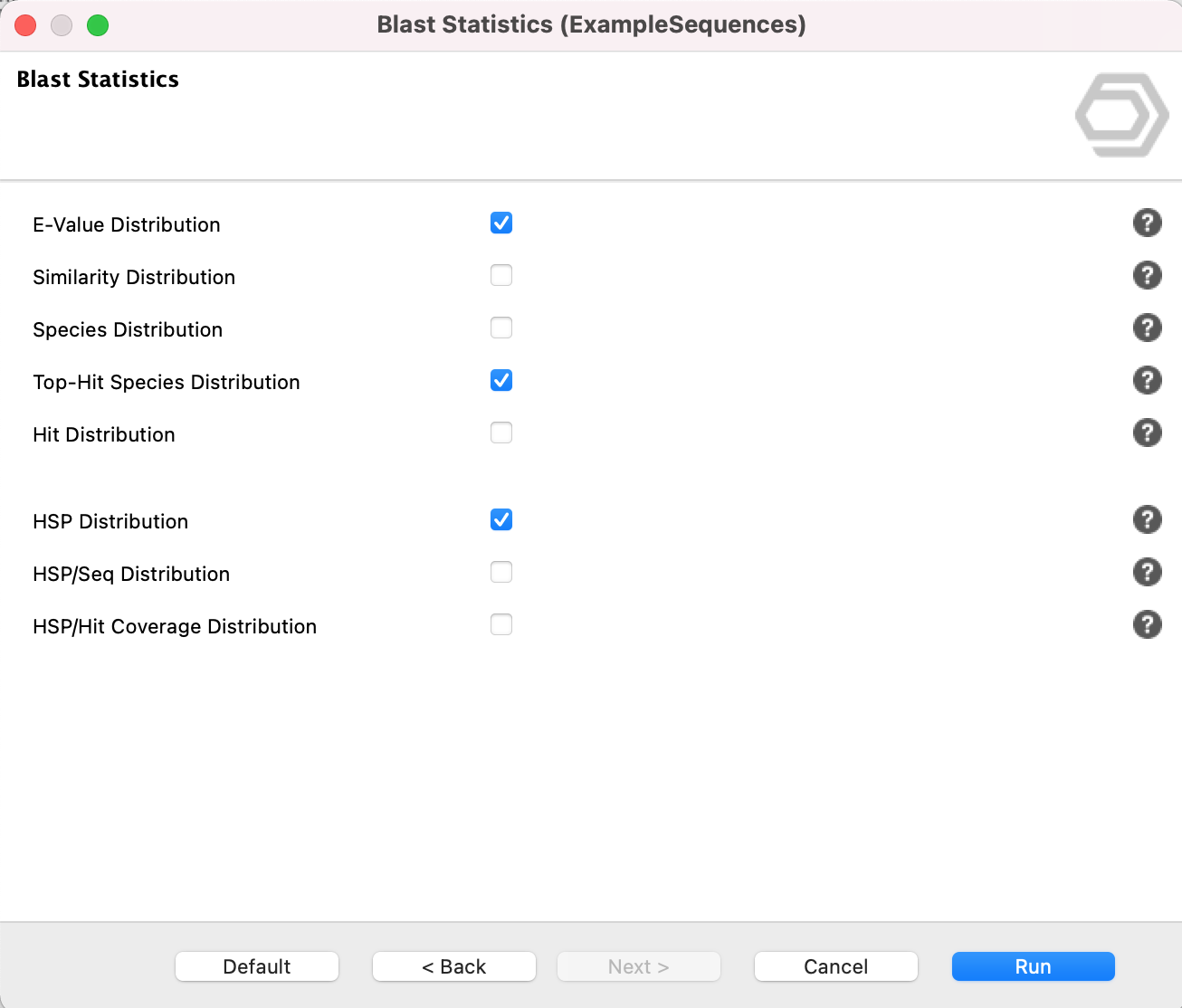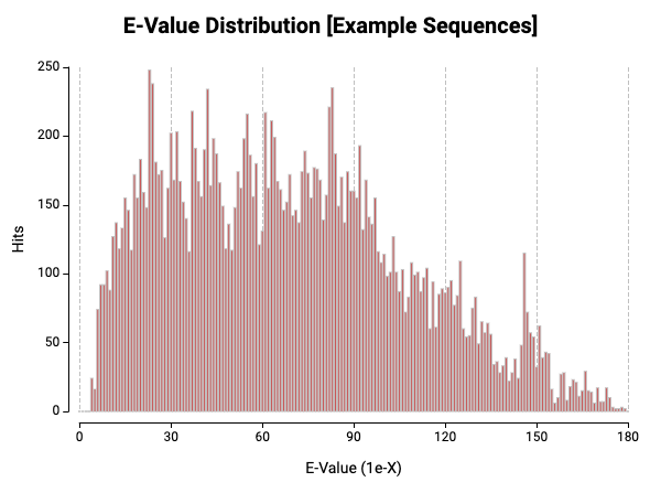 - Hit Distribution: This chart shows a distribution of the number of hits for the blasted sequences in a data set.
