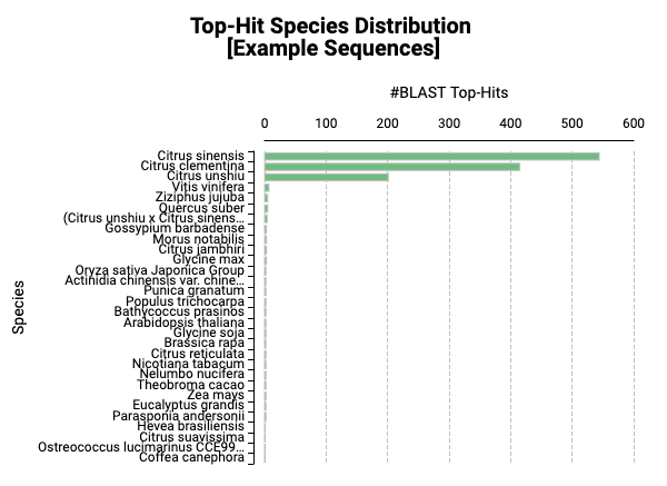 - Top-Hit Species Distribution: Bar chart showing the species distribution of all Top-Blast hits.