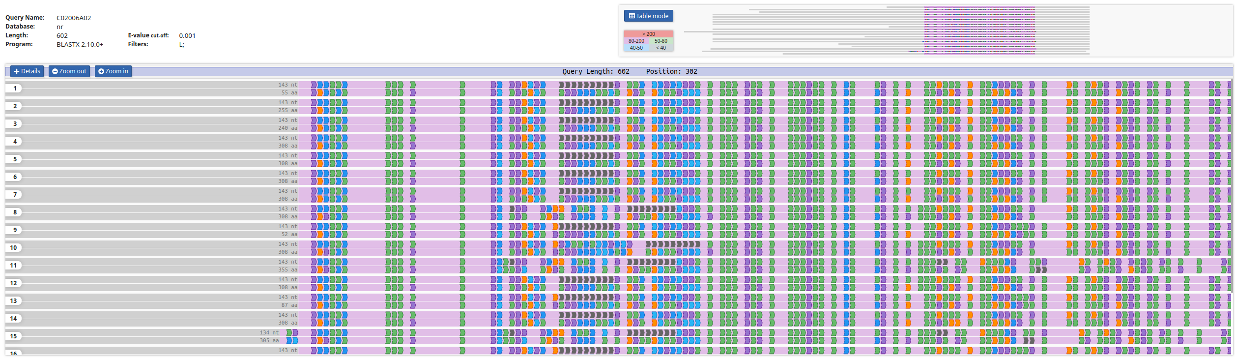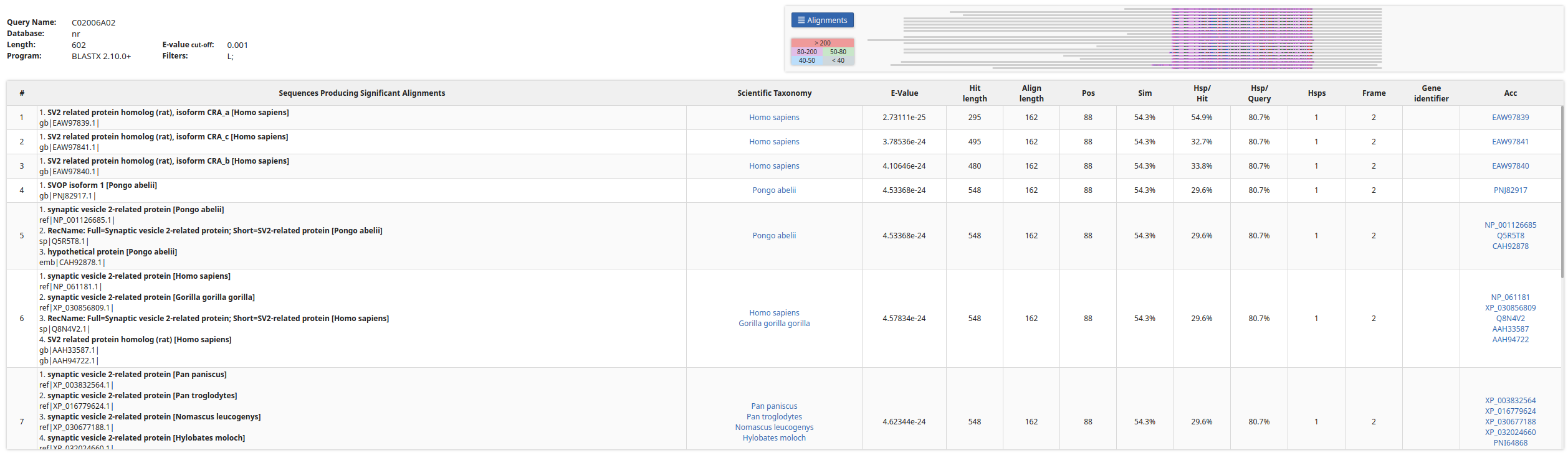 As the BLAST search progresses, sequences with successful BLAST results change their color on the Main Sequence Table from white to orange and the BLAST result-related columns will be filled. In case no results could be retrieved for a given sequence, this row will turn dark-red.