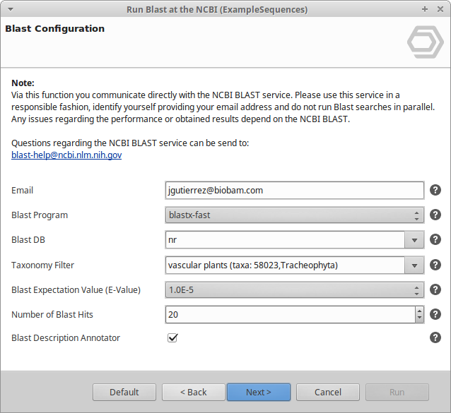 - Your e-mail address in case you are using the NCBI BLAST web service.