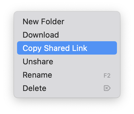 If a file is already shared, the "Copy Shared Link" menu option allows to copy the same link for the file.