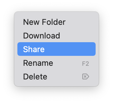The "Share" option in the Cloud Files context menu allows to share private files with others using a link.