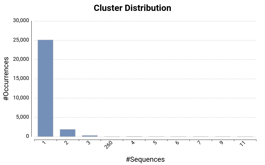 With the advancement of next-generation sequencing technologies, the amount of available sequencing data is growing exponentially. Removing redundancy from such data could be crucial for reducing storage space, computational time, and noise interference in some analysis methods. The Clustering functionality allows to cluster sequence data to reduce this redundancy.