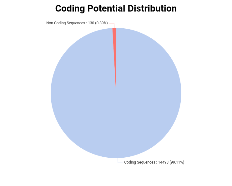 The coding potential distribution is shown as a pie chart of the classification results for the corresponding sequences depending on the provided cutoffs (Figure 4).