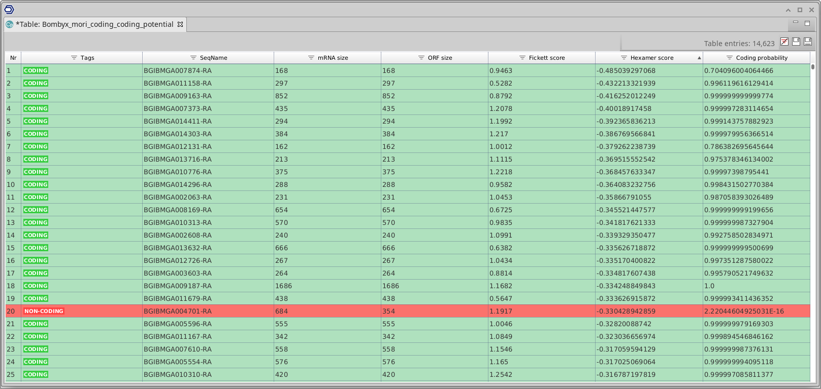 - Tag: Marking for each sequence whether it is a coding, non-coding, or unknown coding potential transcript.