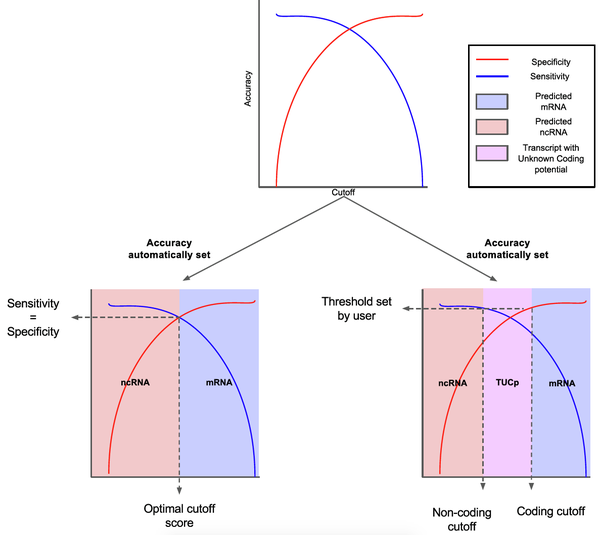 If higher accuracy is desired the accuracy can be set manually. Raising the accuracy will allow classifying the sequences into three categories: coding, non-coding, and transcripts with unknown coding potential (Figure 1).