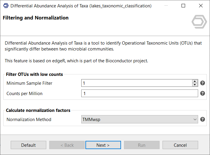 Figure 6. Differential Abundance Testing wizard: filtering and normalization page.