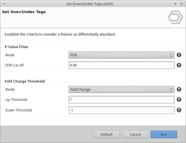 Establish a new FDR and Fold Change cutoff to consider an annotation as significant. FDR < 0.05 and logFC < -1 or logFC > 1 are set as default (figure 22).