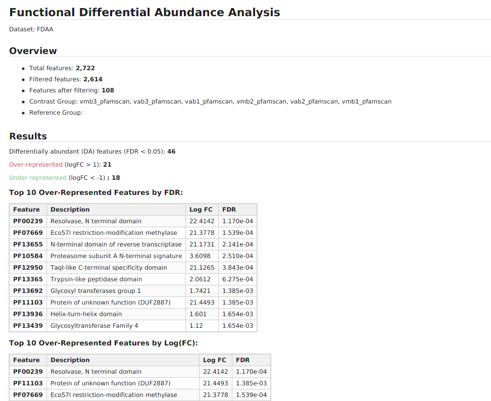 Figure 20. Functional Differential Abundance Analysis summary report.