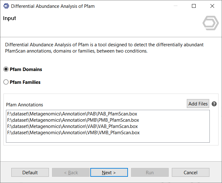 Figure 17. Functional Differential Abundance Analysis wizard: input page.