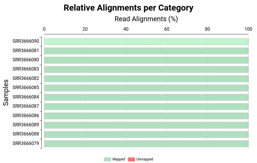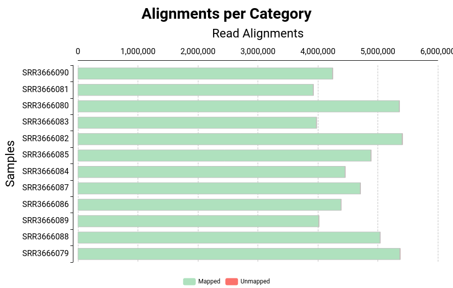 The bar charts (Figure 7) show the number of mapped and unmapped reads of each input file.