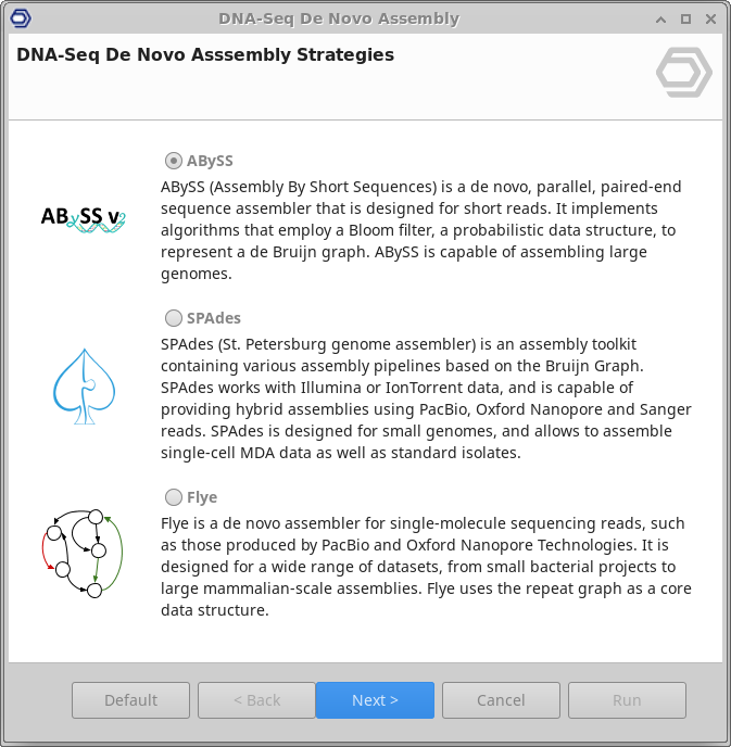 - SPAdes: SPAdes (St Petersburg genome assembler) is an assembly toolkit containing various assembly pipelines based on the Bruijn Graph. SPAdes works with Illumina and IonTorrent data and is capable of providing hybrid assemblies using PacBio, Oxford Nanopore and Sanger reads. SPAdes is designed for small genomes, and allows to assemble single-cell MDA data as well as standard isolates.