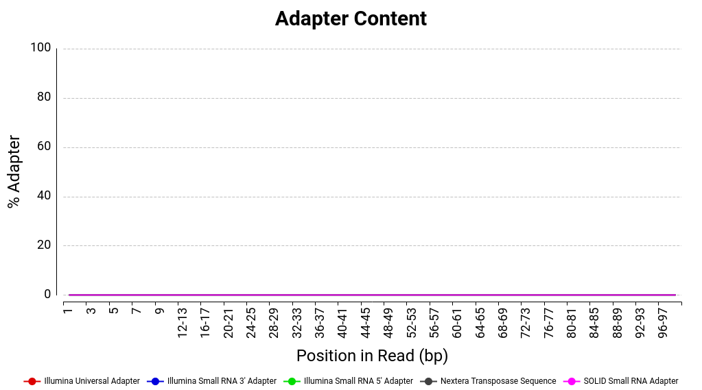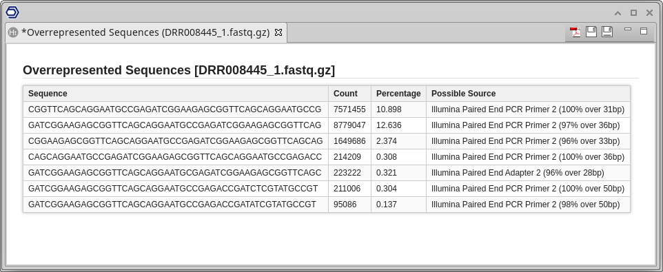 - Overrepresented sequences (such as adapter dimers or rRNA in a sample).