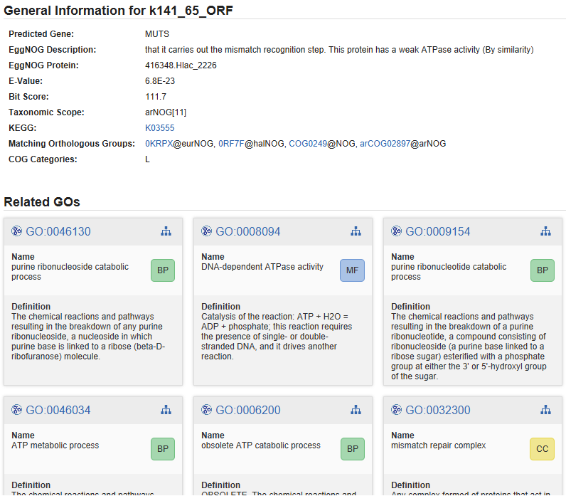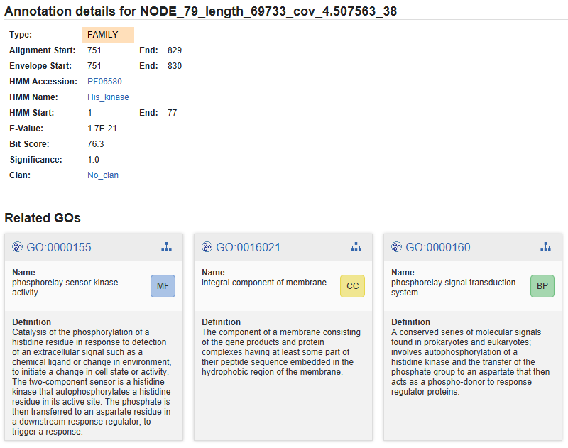 The annotation details (figure 7) provide link-outs, where possible, and give detailed information about annotated GOs.