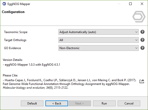 Figure 2.EggNOG Mapper wizard: configuration page.