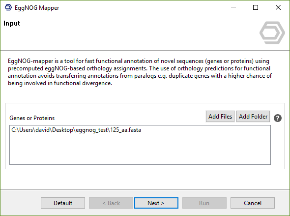 Figure 1.EggNOG Mapper wizard: input page.