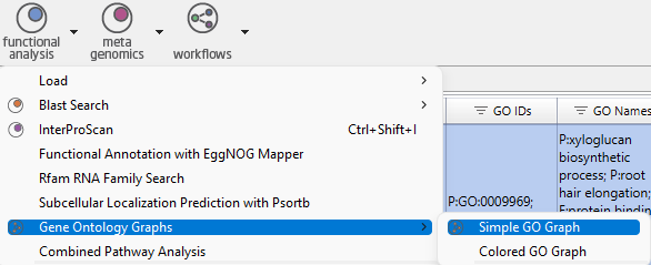 These functionalities are available under the functional analysis → Gene Ontology Graph and the Combined Graph on the side panel once a sequencing project has been loaded.