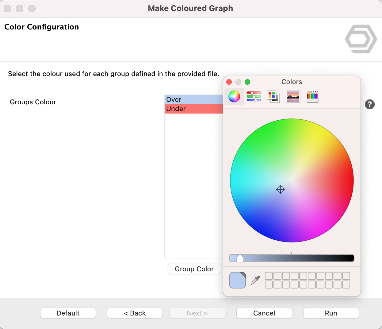 According to the example above Group B has two GO IDs that contain different values. It is also possible to differentiate these GO IDs by coloring according to their values. In order to color the octagon according to the value, you should select the gradient color on the next page on the color graph configuration window (see figure 6).