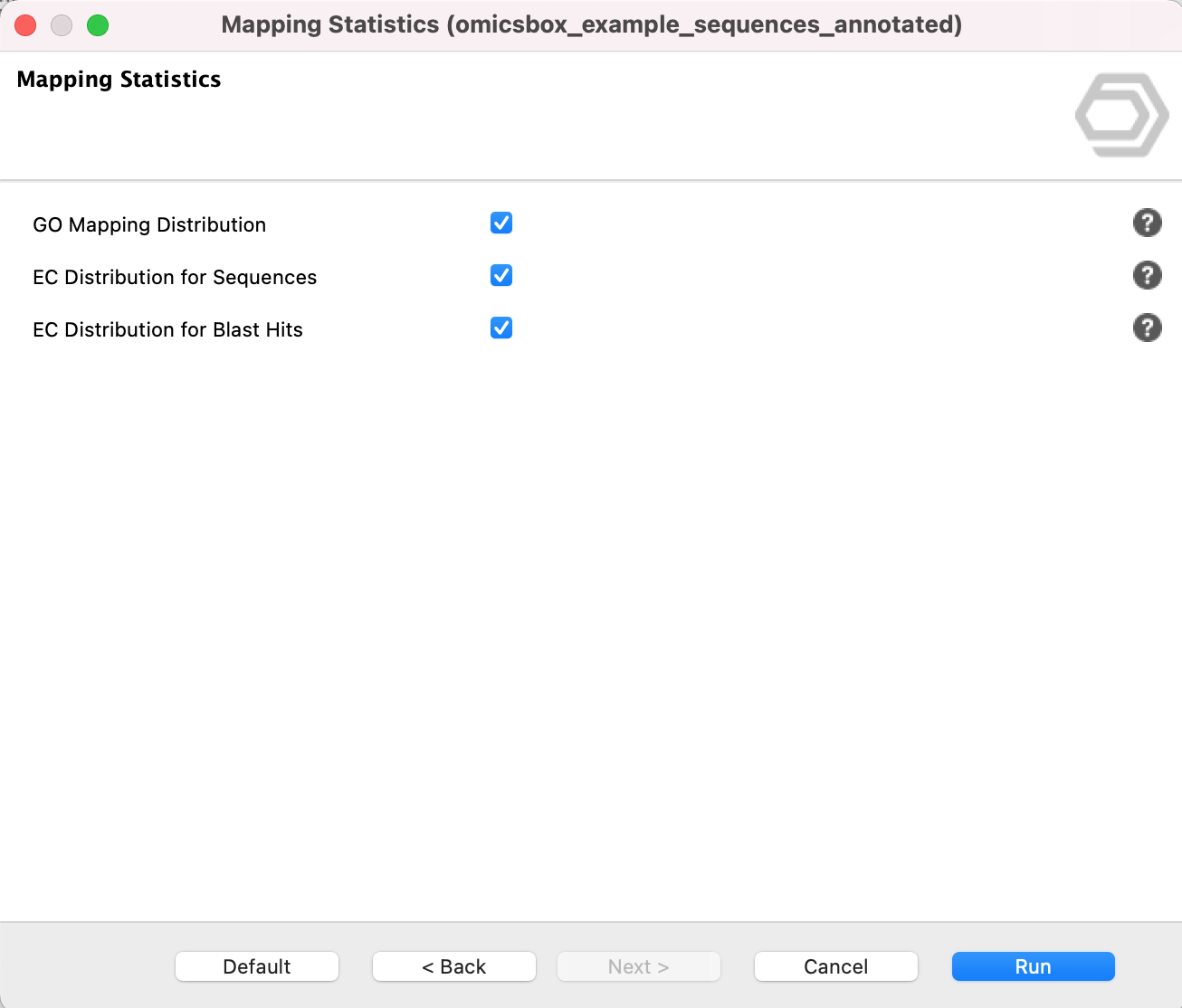Mapping is the process of retrieving GO terms associated with the Hits obtained by the BLAST search. OmicsBox performs four different mappings steps: