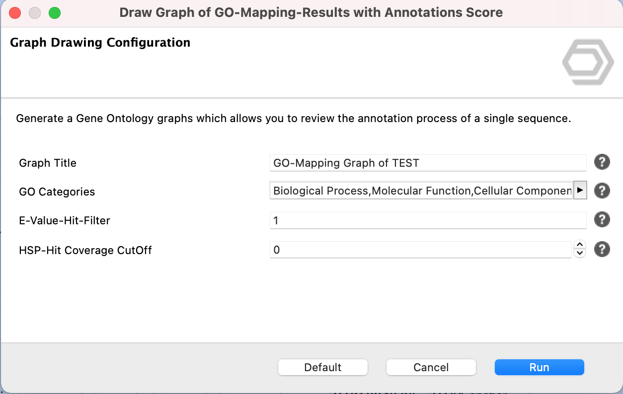 Make Graph of GO-Mapping-Results with Annotation Score. Displays a DAG with all GO terms related to one sequence. Shows all the GOs from the mapping step as well as final annotations (highlighted). The wizard (figure 4 allows filtering the hits which will be taken into account (see Gene Ontology Graphs section for more details about visualization in OmicsBox)