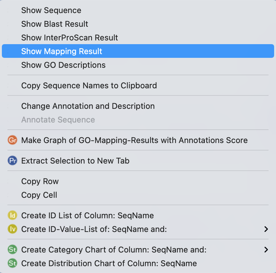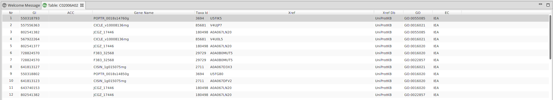 - Show Mapping Results. A new table will be displayed (see figure 3). The resulting table shows the GO mapping results for a particular sequence. See Table section to manipulate/extract the results from this table.