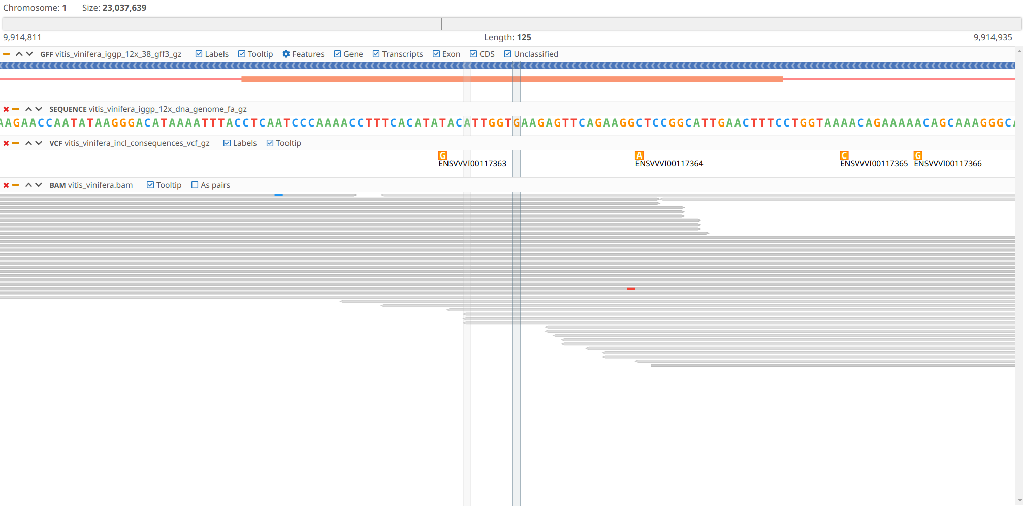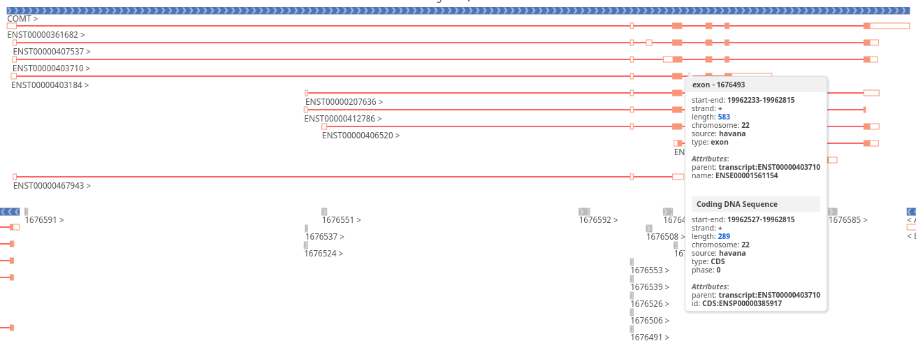 A tooltip will appear on mouse hover, it will show additional information about the feature and the information is collected from the GFF file.