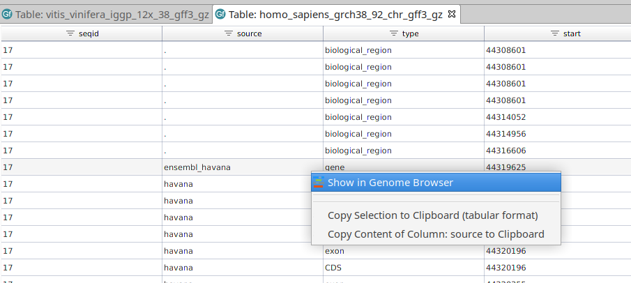 Figure 14: Open the Genome Browser from GFF table
