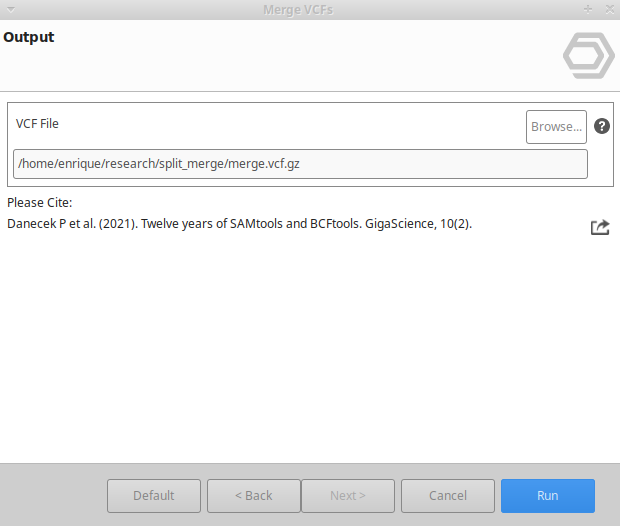 The tool to merge VCFs can be found in the Genetic Variation Module of OmicsBox under VCF Tools → Merge VCFs.The wizard consists of two pages and allows you to define the input and output options as well as different options to merge VCF files (Figure 1, Figure 2).