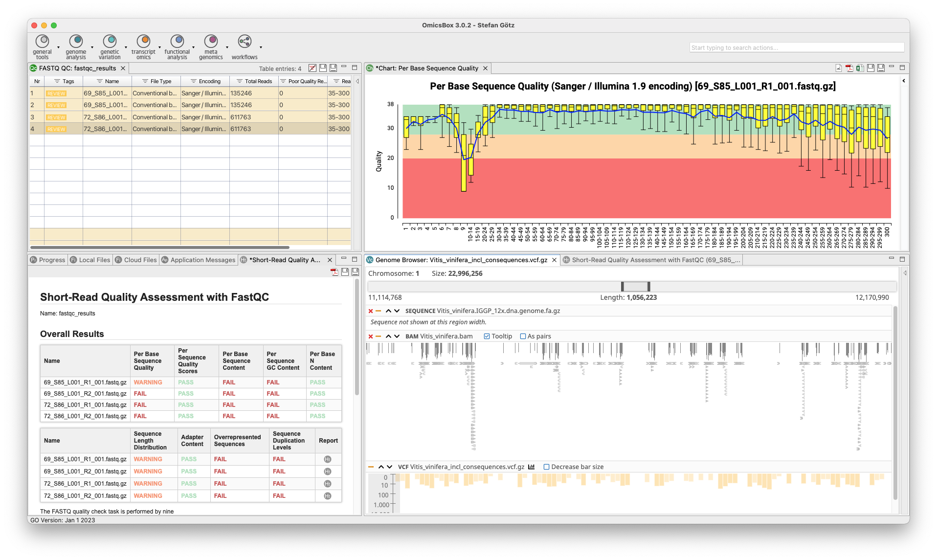 The OmicsBox Genome Analysis module allows the characterization and analysis of newly sequenced genomes, from raw reads to gene structures in an efficient and user-friendly way.