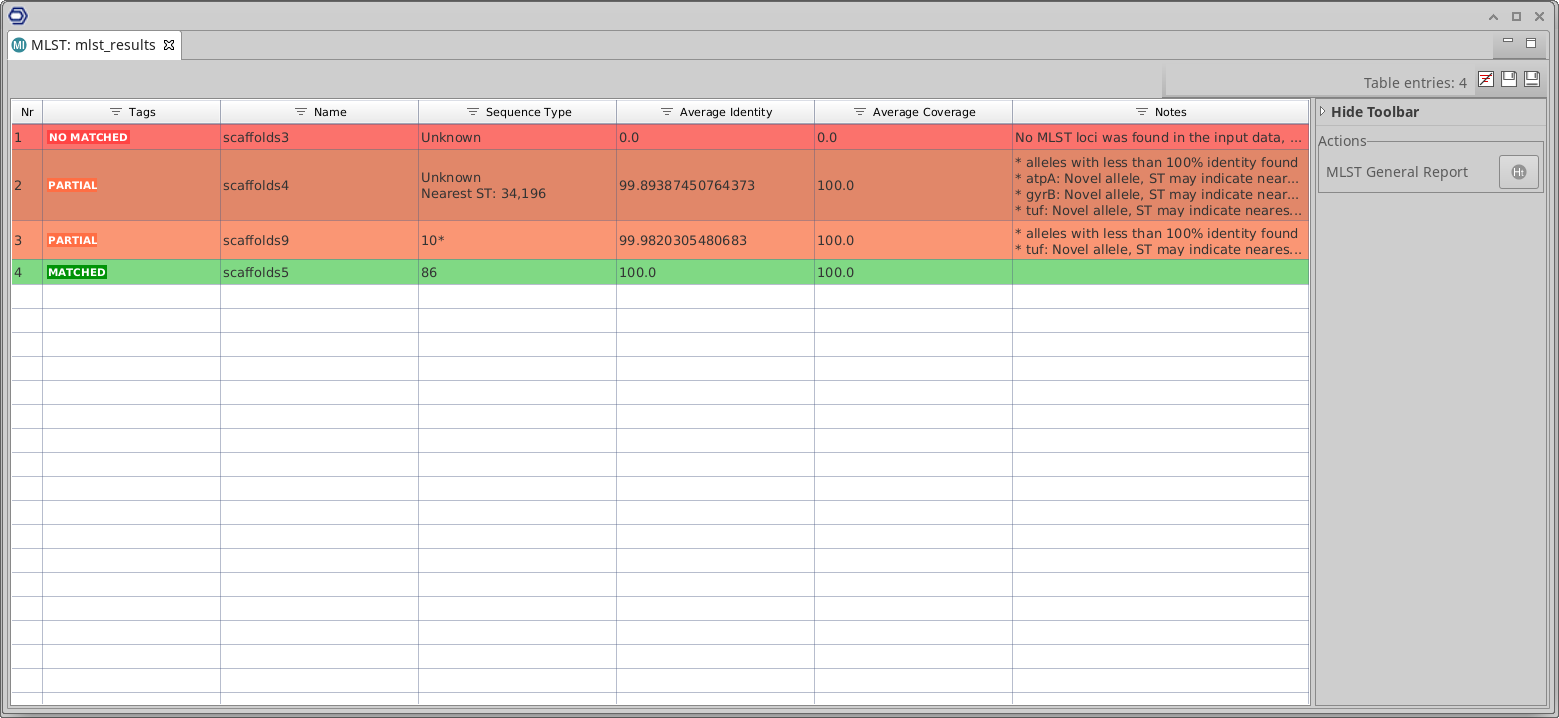 When the MLST completes, it creates a sequence table containing the MLST results (Figure 3). This table will contain: