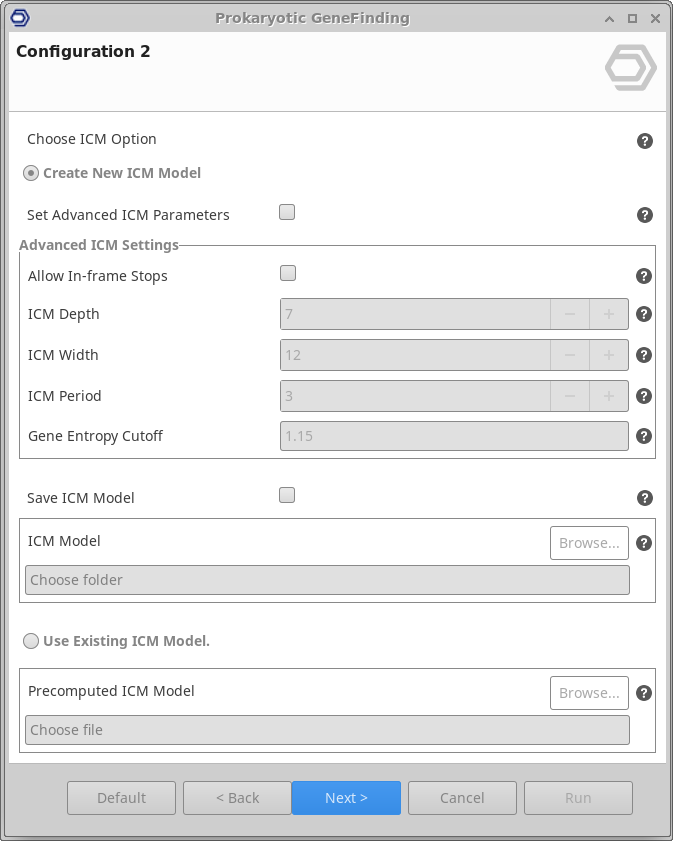 - Precomputed ICM Model: Select the file containing the Interpolated Context Model (ICM).