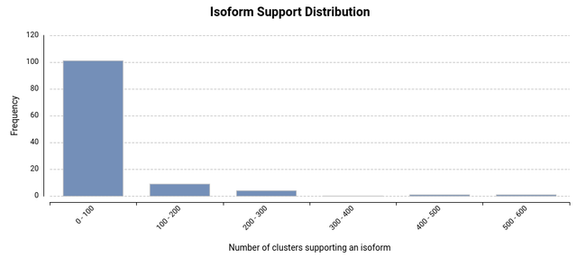 Isoform Support Distibution: distribution of the number of reads used to reconstruct a transcript (see Figure 6).