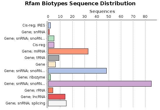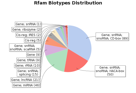 - Biotypes Pie Chart: This pie chart shows the distribution of the Rfam families of the sequences.