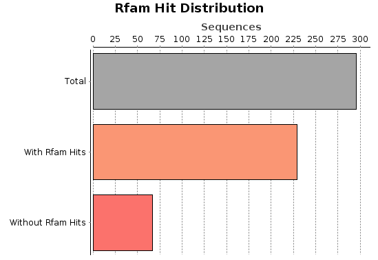 - Hit Distribution: This chart shows a distribution chart of the number sequences with hits in the Rfam analysis.