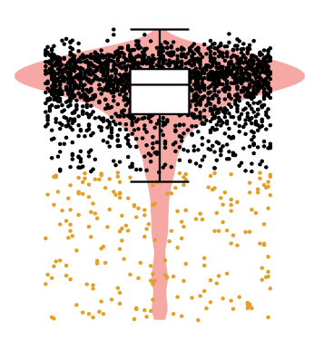 Figure 4. Example of a Delta Distribution score for a cell type. Each dot represents a cell, colored in yellow if it has been pruned.