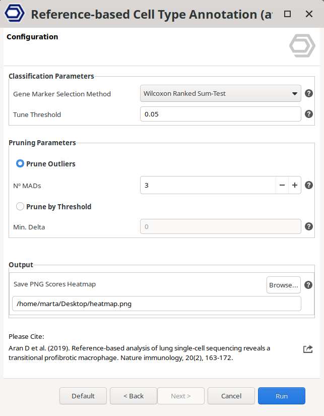 This page allows configuring the parameters for the cell type prediction, refining, and pruning steps (Figure 3).