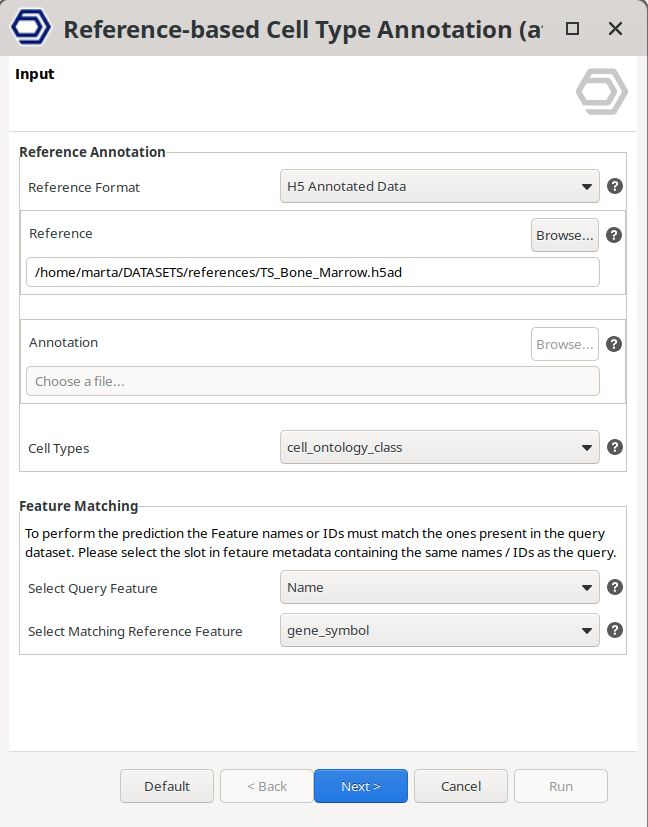 - Reference. Select here the single-cell annotated file.