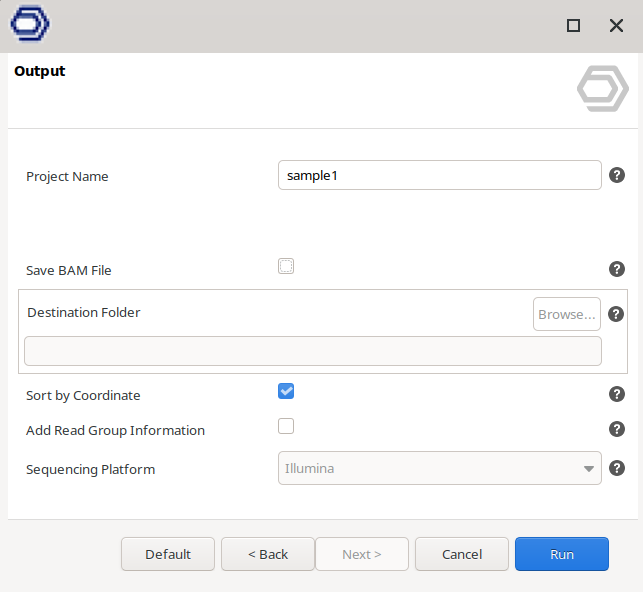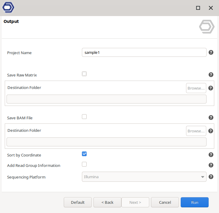 - Sort by Coordinate. Sort the output BAM file by coordinates. If not checked, the BAM file will be unsorted.