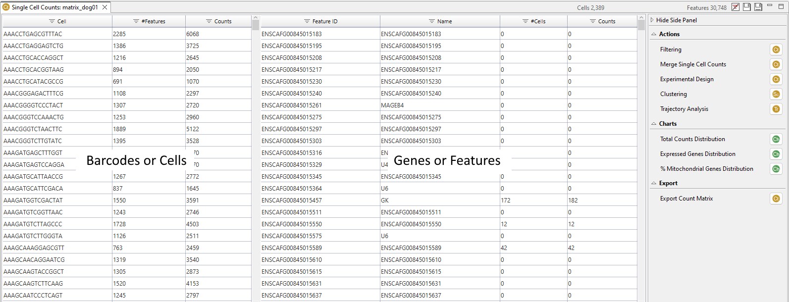 Figure 11. scRNA-Seq Count Matrix object main viewer.