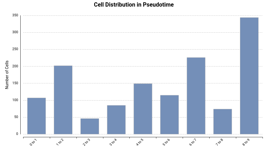 - Distribution of Cells Over Pseudotime Ranges: This visualization depicts how cells are spread across various pseudotime values.