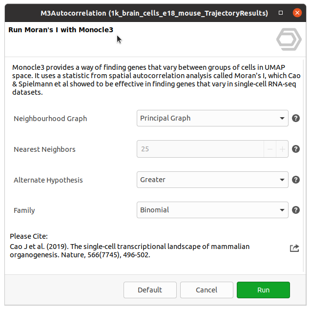 Figure 9. OmicsBox wizard for Monocle3 Autocorrelation Analysis.