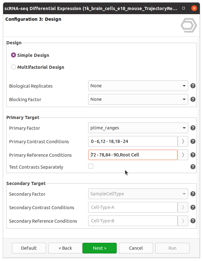Figure 10. OmicsBox wizard for Monocle3 Differential Expression Analysis.