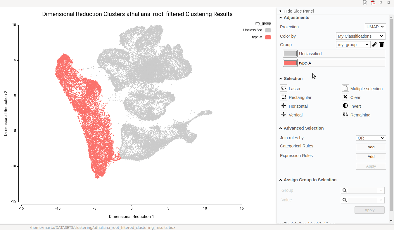 Figure 11. Example of the "lasso" tool for selecting areas of the UMAP/tSNE viewer.