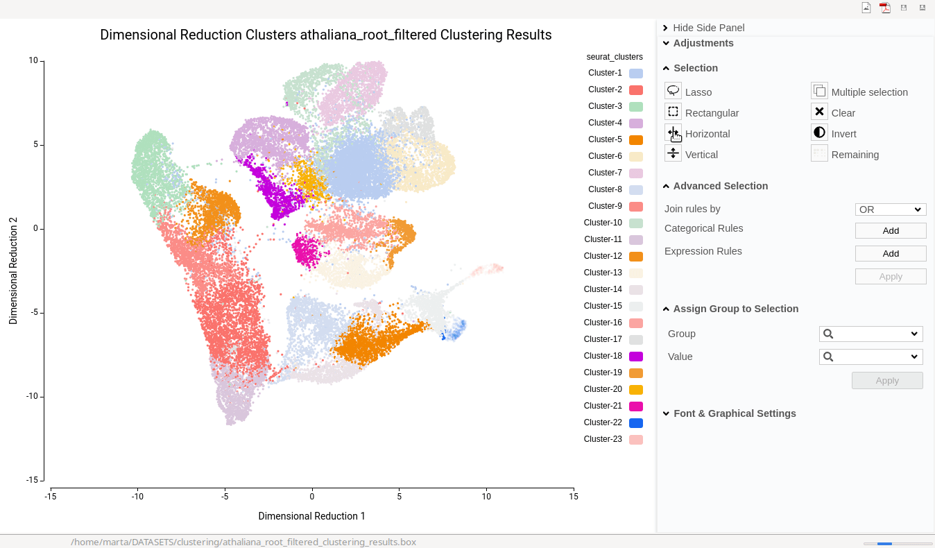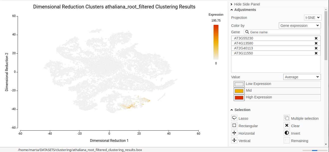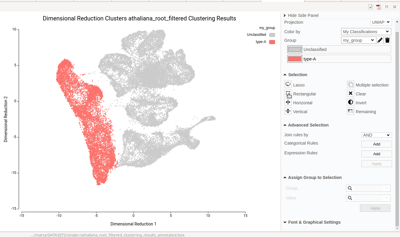 Figure 12. Example of the "rectangular" tool for selecting areas of the UMAP/tSNE viewer.
