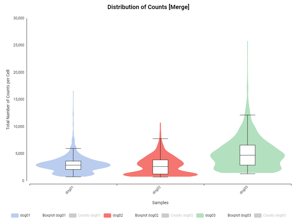 Figure 3. Violin and box plots show the distribution of the total number of counts per cell.