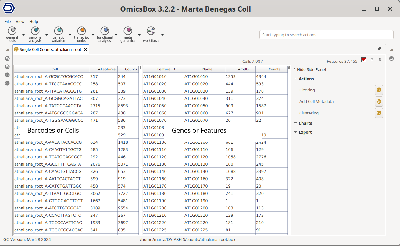 Figure 1. scRNA-Seq Count Matrix object main viewer.