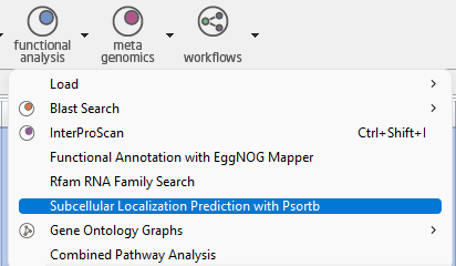 Figure 1. Run PSORTb in the Functional Analysis menu.